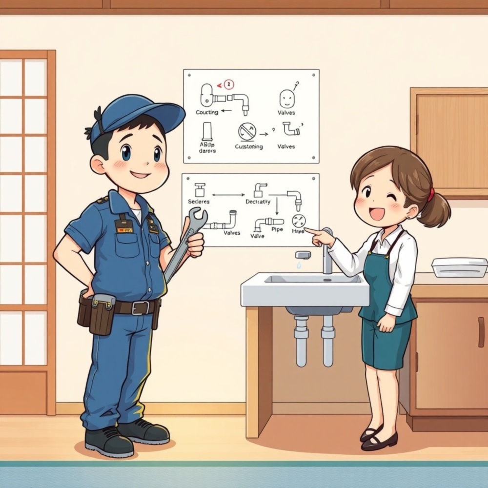 A: まず給水バルブを閉めてください。緊急時も7-19時、年中無休で対応します。